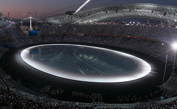 Stahlfaserboden als Basis für die Eröffnungszeremonie der Olympischen Spiele 2004, Athen, Griechenland.